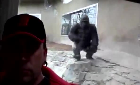 monstrous gorilla tries to attack zoo visitor through glass